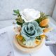 **花材|**主花为2朵不凋玫瑰花(永生花),配花含不凋绣球花与其他不凋花材与叶材