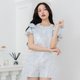 非常可爱的淡蓝套装,这款衬衫采用韩国进口提花梭织布料制成,布料上有花朵图案,穿着舒适不痒。细节装饰胸前正中央有一枚钻石胸针。肩部配有蝴蝶结、娃娃袖和肩部小细节。穿着很酷很舒服,但喜欢保持身材的衣服的人一定要入手这套。这件衬衫宽松。建议不穿内衣穿着,以获得舒适的感觉。如果将它与现有的白裙子或裤子搭配起来会很可爱。底部搭配喇叭短裤。剪裁图案的两侧有喇叭形尖端。使前面的形状不膨胀穿上它,你不会显得肥胖或臃肿。