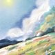 手绘宁静风景搭配圣经经文“Cast all your anxiety on Him because He cares for you.”(彼得前书 5:7) 。传递希望与安慰。