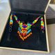 这件作品不仅是饰品,更是文化的记忆载体——每一颗珠子都诉说着手工的温度与族人的故事,象征“以色彩编织灵魂,以传统创造永续”。项链是以多色番珠(压克力珠)手工编织而成,色彩鲜明、光泽细致。全程手工完成,工序繁复、需高度专注与技巧。传统工艺师已渐凋零,已难再现,此条乃独一无二的作品。