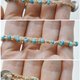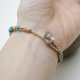 手工编织麻绳手环, 搭配小巧的蓝色绿松石(土耳其石) 与手工刻花纯锡扣 。