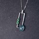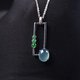 - 【名称】冰蓝水翡翠蛋面设计款项链 18K 金钻石 【尺寸】整体尺寸 34x13.4x5.5 裸石尺寸 9.7x7.7x4.3mm 【产地】缅甸 【颜色】淡蓝 【备注】天然缅甸玉翡翠 A 货 【编号】璎珞吊坠 184