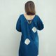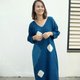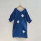 V 领连身裙靛蓝色扎染四分之三袖休闲外观。柔软的萨鲁棉布料,可爱的设计,凉爽的靛蓝染色图案。可爱的后弓弦,可根据需要调整颈部宽度。轻盈棉质,适合夏季和日常穿着。
