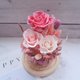 **花材|**主花为不凋玫瑰花(永生花),配花含不凋绣球花与其他不凋花材与叶材
