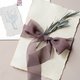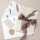 以厚磅的复古手撕纸为底,搭配浓棕缎带和不凋茶树叶,