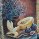 这幅明亮饱满的画作采用直接画法 (la prima) 创作,描绘了花园里的薰衣草,以及饱满成熟的黄色甜瓜和无花果。我运用温暖自然的色调,使画面呈现出平静舒适的氛围。尽管如此,最终呈现出的却是色彩缤纷、充满活力的作品。这幅静物画的构图源于我的想象,并用油画颜料在艺术纸上完成。