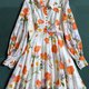 🍊🌼 1960-70s特有棉纱 大复古翻领骑士袖连身裙(少见日常短款) 虞美人 雏菊 紫绣球花柄 褶皱裙摆 同款面料包扣 超美 尺寸/长94 胸46*2 腰36*2 肩38-39
