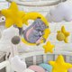 - This Mobile includes Sleeping Elephant, The Moon, 5 clouds, 5 stars, 6 pom pom felt balls. You can choose a different pom pom ribbon color: pink, blue, white, beige. And also a different color of pom pom felt balls (15 colors) and stars (29 colors). Your special gift to Baby Birthday, Baby Sower, Christening.
