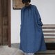 展现成熟的优雅可爱感 圆领连身裙 长版连身裙 亚麻连身裙 蓝色 250918-1