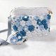 这款手机包以蓝白色系为主调,一朵朵立体花朵手工编织拼接,像是把一片温柔的小花园,轻轻收进日常里。