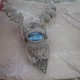 土色麻“Lunar Goddess”流苏项链,饰有拉长石水晶、黄铜装饰和黄铜凯尔特三位一体符号。这个符号纪念月亮女神伟大母亲的三个月相和面孔。长度可透过滑结轻松调整。