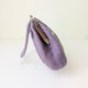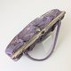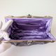 以藤紫色为底,优雅地描绘着流水纹样的串珠包。白色的浪花图案巧妙地点缀其中。