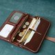 “切线派” 手染的产品,目前使用的是美国进口的Fiebing's皮革酒精染料。为了染色均匀自然,开始我们需要用水把皮面打湿,然后用海绵一遍一遍的涂上染料,由浅到深,直到达到我们想要的颜色为止。干了以后还要上一层固色剂,增加色牢度。还要用清水在皮的表面涂抹,擦去表面存在的灰尘并让颜色更加均匀。