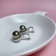 这一对大溪地黑珍珠在黑珍珠的底色上泛出鲜明的孔雀绿晕彩,充满着来自大洋海底的神秘感,直径9.7mm,皮光细腻,镜面光泽,孔雀绿色炫彩,两颗珍珠生得很有灵性,形状略有一点不同,微微瑕社交距离不可见。纱织小姐为其配s925银镶锆石的新古典Artdeco风格耳扣,可表现出女性的飒爽英姿,于理性平和中散发出一点微微的进攻性,是为大飒蜜,360度无死角绽放光彩。