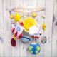 - This Space Mobile includes Boy Astronaut, Rocket, The Sun and 4 Planets: Mercury, Earth, Mars, Uranus; 3 stars, 3 clouds, 4 pom pom felt balls. Made is of eco-friendly materials: felt, cotton, wood. Your special gift to Baby Birthday, Baby Sower, Christening.