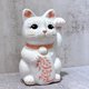 日本清水烧招财猫 花结晶 白 恋爱