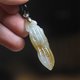 ——金玉满堂。玉质凝润细腻,色泽凝润亮泽,韵味十足。立体圆雕已熟透的玉米块和玉米颗粒,肉质颗颗饱满,根脉线条清晰自然,写实逼真,令人垂涎,其中还雕刻了如意,寓意事事顺心如意,是配戴的佳品。