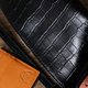 这款**小巧收纳包**以**鳄鱼皮纹**的高级皮革为魅力。