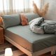 如需添加洗剂,需用中性微量洗剂充份溶解,洗衣机内打出泡沫后,水满后再放入寝具。切勿直接倒洗剂、洗衣粉于布料上,会造成局部褪色喔!