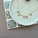 简单大方的SUENIA 海洋宝石金链,以五个蓝绿色的海蓝宝石坠饰以及中空的小金柱串接而成,长度洽好在脖颈交会处,整体协调柔和的色彩, 配戴起来十分优雅美丽。