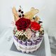 【花材】大地农园永生玫瑰、索拉玫瑰、绣球花、法国白梅、兔尾草、迷你满天星、临花、大桦木叶、姬蕨、米香花、蓬莱松、卡斯比亚、虎眼