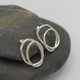 They were created from a square-profile 2 mm silver wire, in 95%silver, that was etched on the surface to give it a more handmade, artisan-crafted feel. The posts and stoppers are in sterling silver.