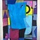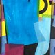 穆克霍伊德的大师级构图堪称几何抽象的杰作。画作以大胆的天蓝色图形为中心,令人联想到爵士音乐家的轮廓或摩天大楼的立面。这个中心元素被各种色调的图形所环绕——深紫色、鲜艳的黄色、柔和的粉红色和朴实的棕色——营造出和谐而动感的视觉节奏。