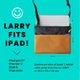 - 适合 Larry 的带保护套的 ipad 或平板电脑的最大尺寸为 19.5 x 25 x 1.5 厘米。