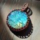 这是在我手边待了满久的一颗拉长,也是我非常非常少数收过的雕花拉长石,当初是一整批跟朋友们一起挑的,朋友们看上的是大小适中的椭圆或水滴比较多,他们大多雕了花瓣比较修长很直觉一眼就能看出是花的图样,带点异国风情很有特色。但我第一眼看中的是这颗显眼的大圆形,除了他的光感与颜色之外,正圆的形状与比起花朵更像是几何图样的刻纹莫名地吸引我。不过带他回家之后一直没有想到完全满意的设计方案,从当年(真的是以年为单位😆)学了金属线编织开始,一般的框线固定或是编织侧框多少会压到裸石面的边角,而爪镶觉得会减损了圆形的完满意象,之后也考虑过金工包框可以解决压住表面的问题,但又觉得拿片银板把他夹紧有点太局促了,于是终于放到了最近开始做新编织框时又想起了他。保有空间感的曲线边框不会有盖住图样花瓣尖端的压迫感,弧形线条正好也跟主石的图样彼此呼应,坠头的部分也做了同样能联想到主石图样的花瓣形状,在阳光下随手一按的照片就拍出了前所未见的鲜明跃动色彩,我想这就是我终于找到理想设计的证明吧。