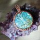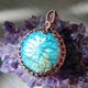 拉长石吊坠,金属材质为纯铜线,整体尺寸(长x宽)为48x36mm。
