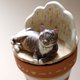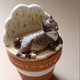 整体由手工制作的石塑粘土盖子、摆件部分,和涂装的陶土罐子部分组成,粘土部分已涂哑光防水油。