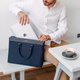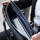 采用质感丰富的头层十字压纹皮革和防水尼龙制造,并以高级的银色金属作点缀,这款精致优雅的公事包具备宽敞的内格层,妥善收纳你的平板电脑,15' Macbook Pro 和A4 文件。两个精心设计的拉链隔层让商务男士轻松收纳个人随身物品。配上轻易调较的肩背带,让你轻松自信地穿梭都市。