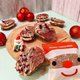 **原料/** 蛋液,柠檬汁,杏仁粉,红茶粉,甜菜根粉,糖,玫瑰酱,新鲜苹果粒,奶油,奶油奶酪,巧克力,食用玫瑰花瓣等