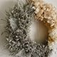 花材内容:日本永生绣球花、干燥卡斯比亚、永生叶脉、纱质缎带。