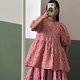 衬衫+裙子套装网状蝴蝶结覆盖棉质面料,花痴