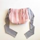 オーガンジーの淡いコーラルピンクにコットン素材のダスティピンクのくすみが加わり、大人感のある落ち着きのある表情に仕上がりました。
