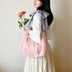 3way仕様ですので手提げ、ショルダー、斜めがけとしてお使いいただけます。リボンの長さを調節することでいろいろな表情に!