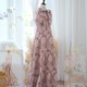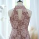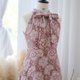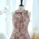 长裙,颈部系有蝴蝶结,侧面有拉链,根据顾客要求的长度剪裁。
