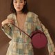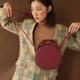 - 波尔多酒红色 圆形手工打结麻花进口头层牛皮制 真皮立体斜背包