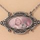 复古框架复古图片花童与粉红玫瑰吊坠项链首饰。灰色棕褐色灰色米色灰色灰褐色粉红色尘土飞扬的玫瑰复古照片图片椭圆形古董银框吊坠项链。手工复古风格维多利亚时代珠宝项链颈链。女孩女人给她的珠宝礼物。