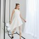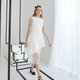简单、优雅,搭配削肩,显得高贵又时尚。饰有透明褶皱布料。图案很整齐。背面缝制并配有衬里。你可以戴着它去旅行。在重要的日子出去参加活动是别致而独特的。