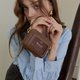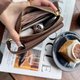 - 迷你零钱包、短夹、迷你钱包、牛皮、多功能拉链零钱包、拉链袋、深棕色