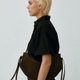 包身侧边设有袢带造型,使整体更加有层次,皮革使用真皮牛剖层制成,手感柔韧且舒适。包袋开口处设有俐落斜切角面拉链牌,并加长皮绳使开合上更加便利。