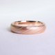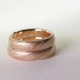木目金,原是400年前日本刀剑工艺技术的一部分,经由不同金属交叠烧焊熔接,重复经过退火、锻造、扭曲、挫修、钻孔与辗压等步骤之后,使金属表层因色差与前述加工方式产生丰富的纹路变化,每一件的纹路都是独一无二,在日本以及欧美等地常被当作特殊的工艺藏品或是结婚戒指