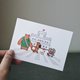 走跳金门明信片,款式全五种,景点包含莒光楼、八二三战史馆、安岐风狮爷、金门高中与沙美摩洛哥。 [材质] 铜西卡300g,正面上亮光