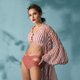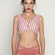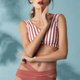 Contemporary two piece with button detailed Tops creates more playful looks with moderate coverage. **‘Brette’** adds on with the tie at the center back helps to position as needed. X Cross Bottom creates illusion curves to boast the light boning.