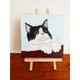 一只可爱的黑白猫咪,有着大大的、会说话的黄色眼睛和粉嫩的鼻子,舒适地依偎在红色毯子上,带着一丝好奇直视着观者。它柔软的皮毛、整齐的白色胡须和动人的眼神,让这幅画作生动而迷人。对于爱猫人士,以及想要为家中增添温馨舒适氛围的人来说,这幅画作堪称完美之选。这件作品旨在: