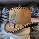 帽子以黑色滚边、骷髅铆钉和带有金属环的装饰性皮革饰带点缀,散发出粗犷的西部与蒸汽庞克融合的气息。