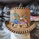 以这款手工皮革高顶帽,展现大胆的美国风格。帽款采用做旧的棕褐色皮革帽顶,饰有精致的绣花老鹰贴饰。