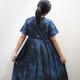 采用印度古老的手染技法“dabu print”,利用泥浆保护布料不被染色,再以靛蓝染色。